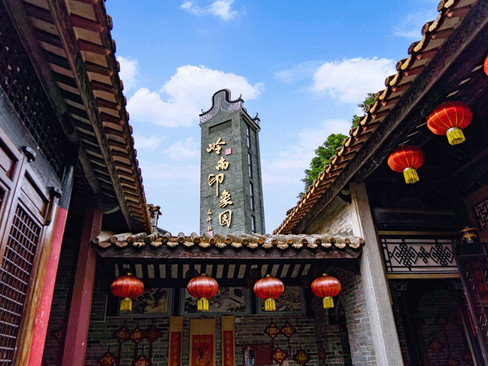典型嶺南傳統風格建築羣的「嶺南印象園」,民居依水而建,窄門高屋,鑊耳高牆,加上悠長的青雲巷、古樸的趟櫳門、精緻的滿州窗,小溪蜿蜒,池塘清澈,處處散發著嶺南水鄉韻味